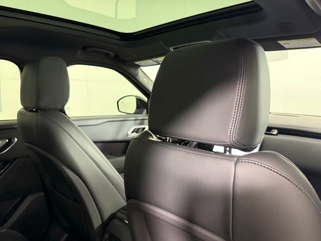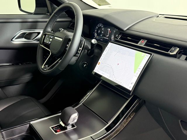 Stepping inside, you'll be greeted by a meticulously crafted cabin that exudes refinement. Grained Leather Seat Trim, Heated Front Seats, and a Dual-Pane Panoramic Sunroof are just a few of the premium touches that elevate the Velar's interior. The Meridian Sound System and Pivi Pro Navigation System ensure you'll enjoy every journey with the perfect soundtrack and seamless connectivity.