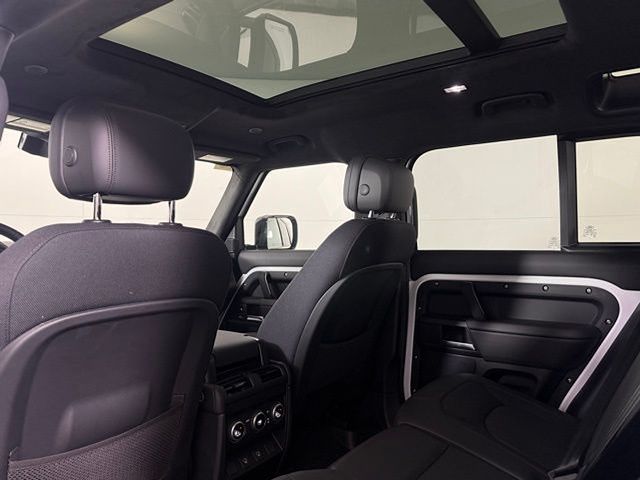 Step inside and experience the unparalleled craftsmanship of the Defender 110's interior. Sink into the luxurious Windsor Leather and Kvadrat Seat Trim, where you'll be surrounded by state-of-the-art technology and premium amenities. The Meridian Surround Sound System and Connected Navigation PIVI Pro will keep you entertained and connected, while the Heads-Up Display and Adaptive Suspension ensure a smooth, confident ride.
