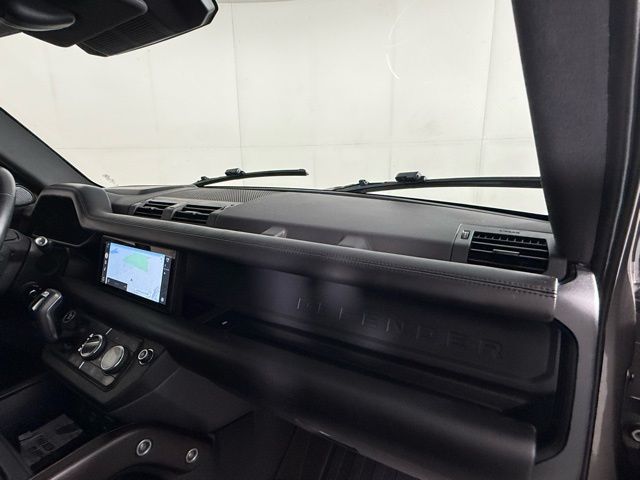The exterior of this Defender 110 X exudes a commanding presence, dressed in a sleek Silver finish that complements the vehicle's bold, angular design. Striking 22-inch alloy wheels and a Dual-Pane Panoramic Sunroof further enhance the visual appeal, ensuring this SUV stands out wherever your adventures take you.